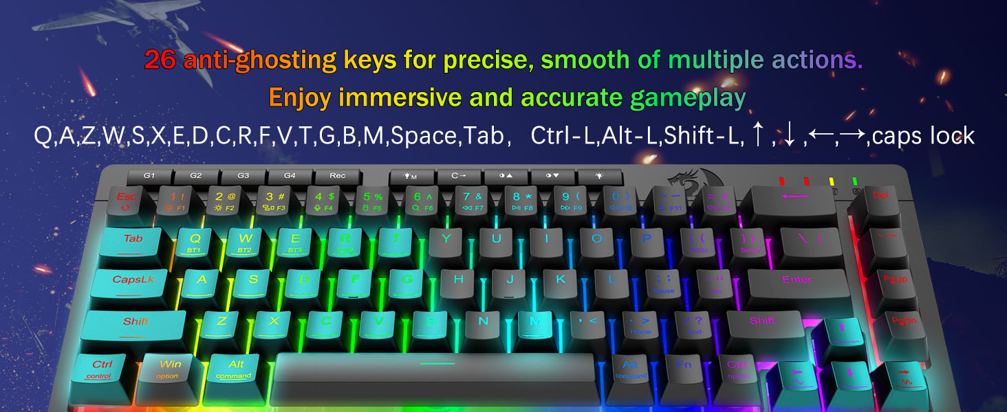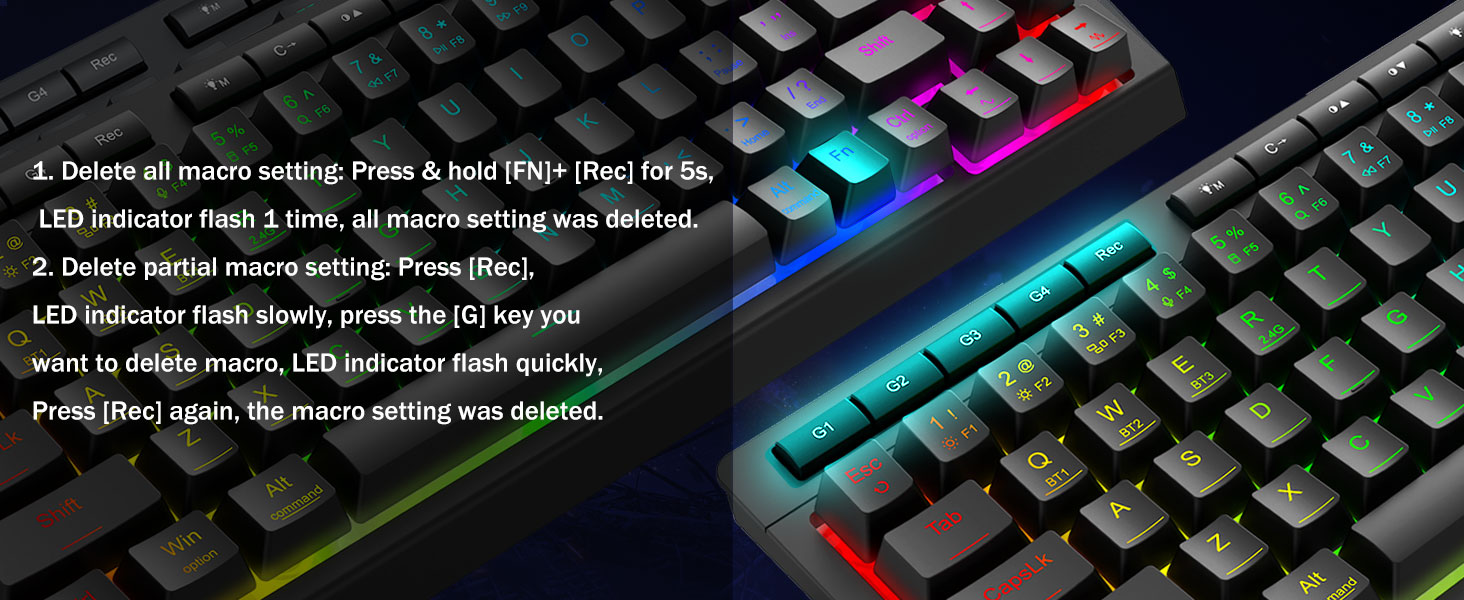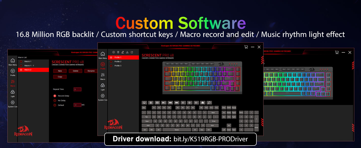 Macros Macros, Mana Whakakore -Whakahaerehia te 4 o runga o nga macro macro (G1-G4) tonu - kaore he kaupapa e hiahiatia ana. Tuhia nga honohono matatini mo te petipeti, nga poto poto mo te hua, te whakahau ranei i nga ture. Whakapaihia to mahi i roto i nga hēkona. Ka taea hoki e koe te whakamahi i te rorohiko ki te whakarite i nga mahi, hanga macros, whakatika i nga rama RGB, ka whakarite poto poto. Hono Pūmanawa: bit.ly/k524rgb-prodriver