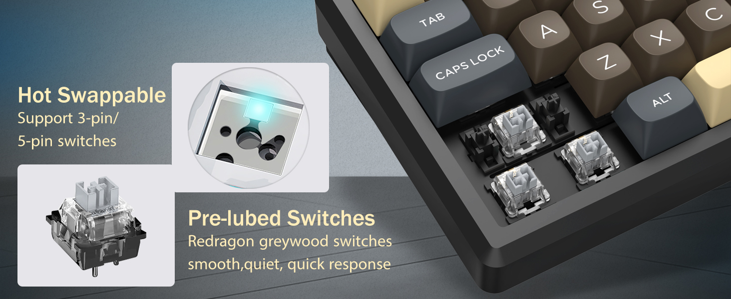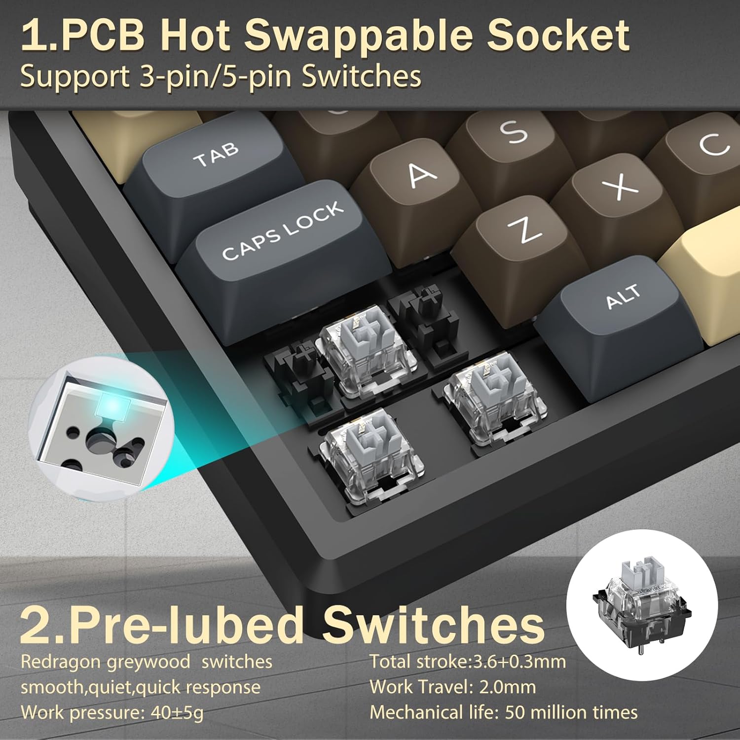 Ko te K727 pango 60% Ahokore Mechanical Gaming Keyboard e tuku ana i te whakakotahitanga o te hoahoa kiato, te mahi miihini, me te honohono ngawari. Ko tana whakatakotoranga ngawari, te whakauru pono, me te hanga roa e pai ana mo te tini o nga kaiwhakamahi.