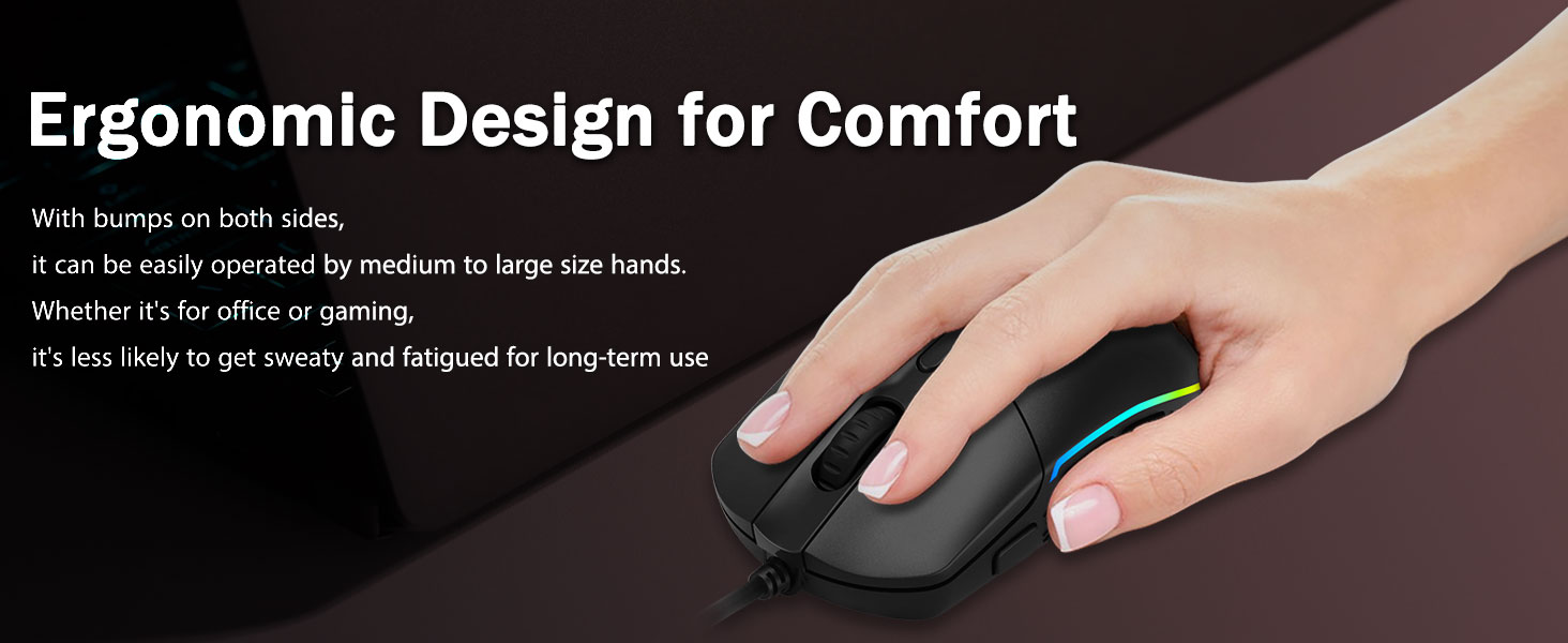 Painga whakamarie- Ko nga putunga o te ergonomic i runga i nga taha e rua ka pai ki nga kiore petipeti i roto i tetahi ringa. E whakarato ana i te whakamarie roa mo nga kaitakaro, kaore i te ngenge i nga haora roa o te waa tino nui. E kore e paheke i te wa e ara ana i te kiore petipeti, me te tere tere me te tere.