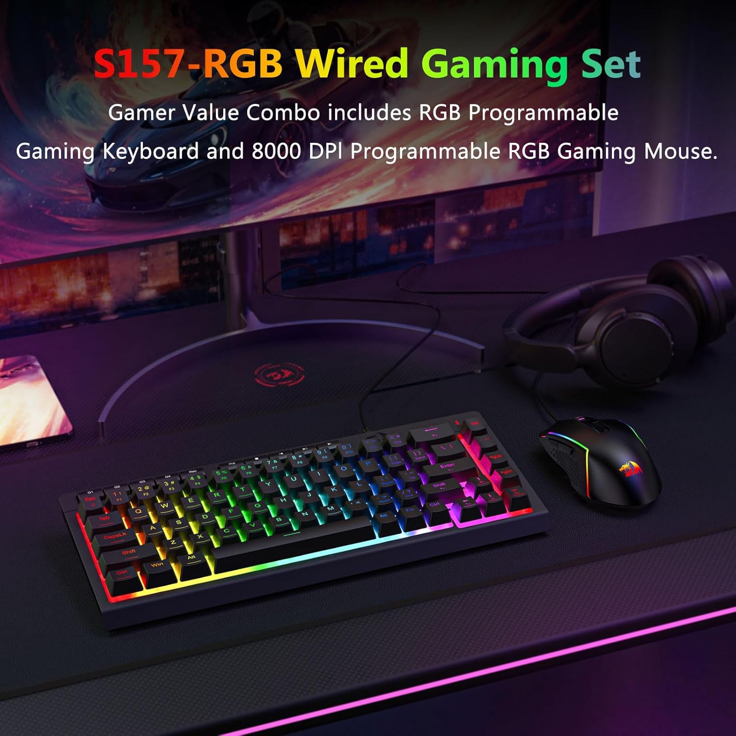 Ko te Black S157 RGB Backlit Wired Gaming Keyboard and Mouse Combo e tuku ana i te whakakotahitanga o te mahi, te mauroa, me te whakamahi. Ko tana papapātuhi rahi-katoa, te kiore aro, me te hononga waea e tika ana mo nga mahi petipeti me nga mahi rorohiko o ia ra.