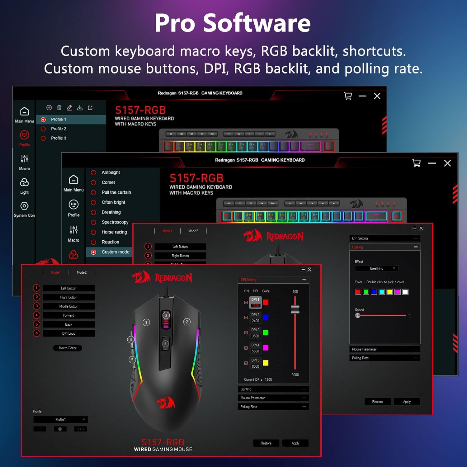 Ko te Black S157 RGB Backlit Gaming Wired Gaming Keyboard me te Kiore he rite tonu te mahi puta noa i nga ahuatanga rereke. Ka tautokohia e te papapātuhi nga patuhi tika, ko te kiore e whakarato ana i te aroturuki pono mo te whakatere me te whakaari.