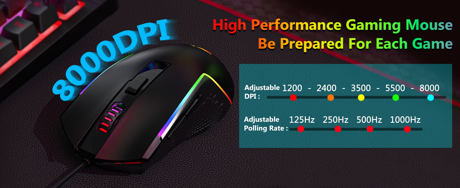 Ko te kiore kua whakauruhia he mea whai pukoro whatu e tautoko ana i te whainga me te nekehanga pehu maeneene. Ko nga tautuhinga DPI ka taea te whakarite ka taea e nga kaiwhakamahi te whakataurite i te aro ki nga mahi rereke.