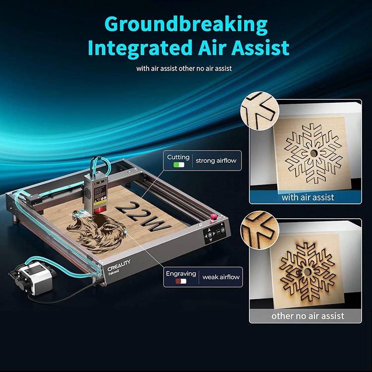 Falcon 22w Putanga Laser Cutter Laser Lasraver, 22w Te whakaputa i te miihini whakairo laser diy i te miihini whakakotahi hau hei awhina i te rakau, te whakarewa, te kirihou.