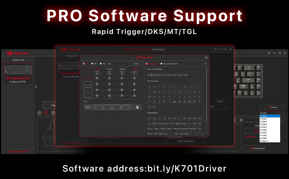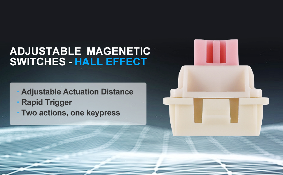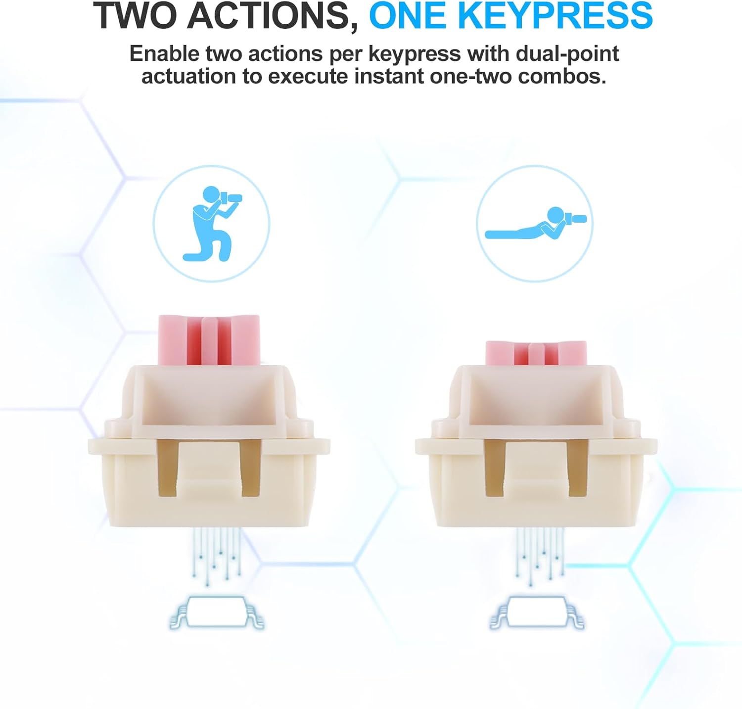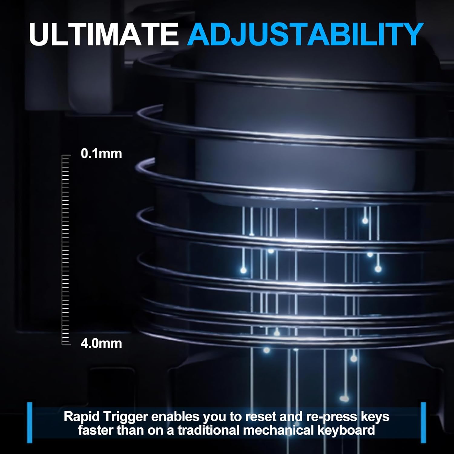Ko te White/Blue-Black K701 Rapid Trigger 60% Wired Magnetic Switch Mechanical Gaming Keyboard i hangaia mo nga kaiwhakamahi e aro nui ana ki te tika, te tere, me te ahua o te ahua. Ko tana whakakotahitanga o te hangarau whakawhiti autō, te mahi tere keu, me te hanga roa ka waiho hei whiringa pono mo te petipeti me te hua.