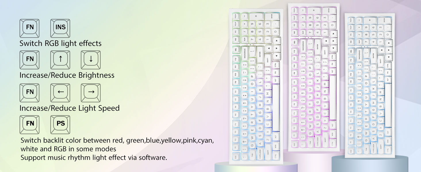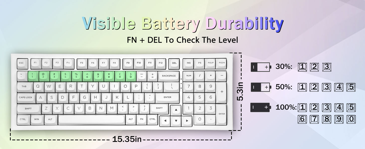 PBT Maincaps me 4000mah pākahiko:99 Keys 96% Papa Papamuri Tautuhi Ka taea te penapena i te papamahi papamahi i te wa e pupuri tonu ana i nga taviri pere me nga waahanga nama mo nga kemu me nga mahi. Ko te papapātuhi ka taea te hanga-i roto i te 4000mah pākahiko kaha kaha ki te whakarato i te kaha me te roa o te ora pākahiko. I pupuhi takirua nga tohu PSTSCaps, i hangaia mai i nga waahanga e rua i hangaia ki a raatau, kia mau tonu nga tohu matua ki te hihiri me te ngoikore, kaore e memeha.